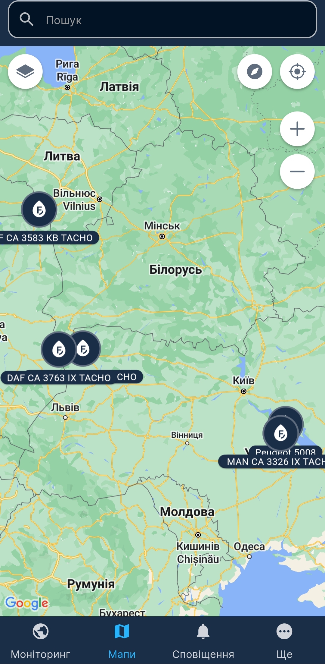 В закладці Мапа візуально відобажаються розташування об'єктів.